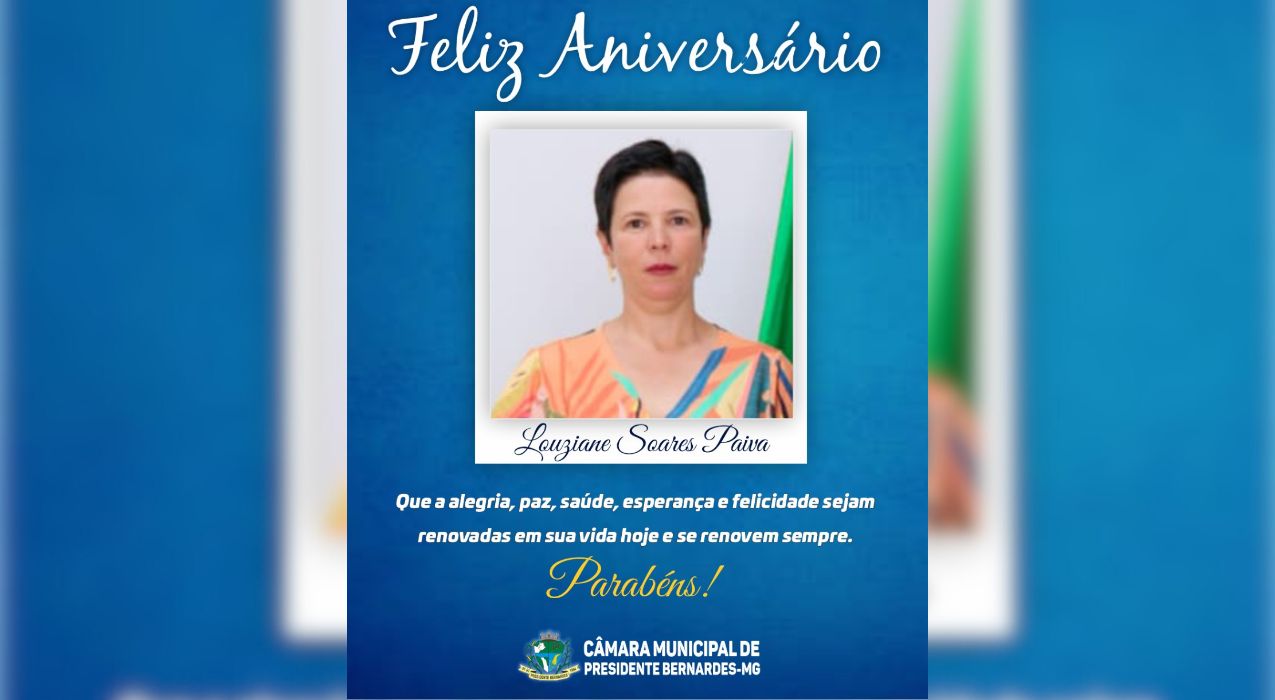 A Câmara Municipal de Presidente Bernardes parabeniza Louziane Soares Paiva pela passagem de seu aniversário.