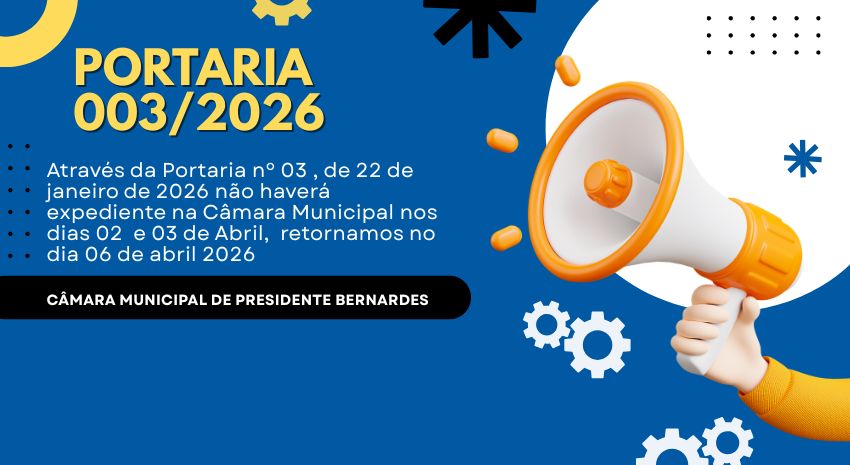 Informamos que, devido ao feriado do Dia da Consciência Negra, a Câmara Municipal de Presidente Bernardes estará fechada na quinta-feira (20/11) e na sexta-feira (21/11), retornando às atividades normais na segunda-feira.